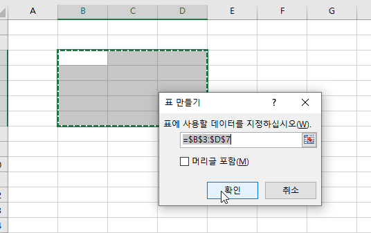 표 만들기 ( CTRL + L)