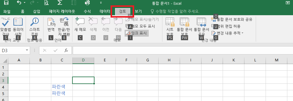 검토 탭으로 이동 ( ALT + R )