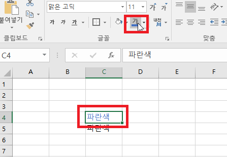 방금전에 실행한 명령을 똑같이 다시 실행해주는 기능입니다. 글씨색을 파란색으로 바꿔 본 뒤, 다른셀을 선택해서 F4를 눌르면 똑같이 파란색 글씨로 바뀌는걸 확인하실 수 있습니다.