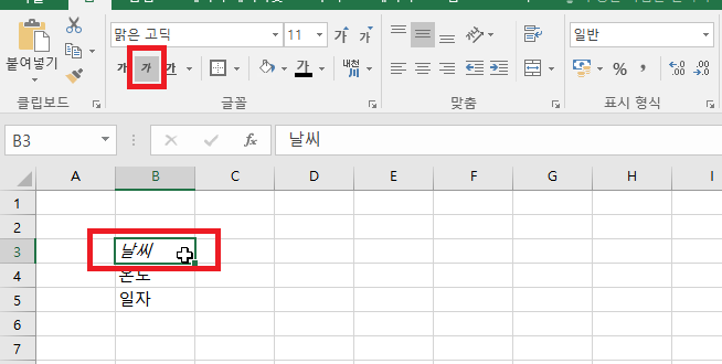 기울임꼴 ( CTRL + I )