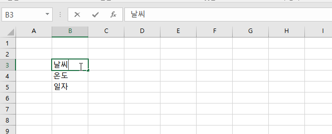 셀을 선택하고, F2를 누르면 셀에 내용을 입력할 수 있게 커서가 나타나고 입력이 가능합니다. 빈셀이라면 그냥 데이터를 입력하면 자동으로 입력이 되지만, 기존에 데이터가 있는경우는 날라가기 때문에, 수정을 할 경우는 F2를 활용하여 주면 됩니다.
