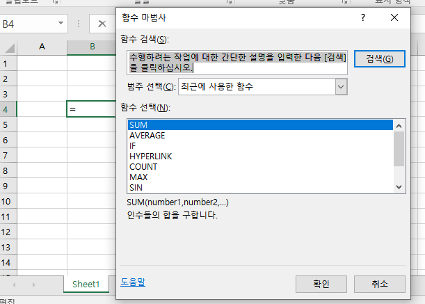 수식 탭에 단축키엔 M을 눌러보면, 수식 탭으로 이동 되고 수식 탭 하위에 있는 메뉴들의 단축키가 표시되는걸 확인하실 수 있습니다.