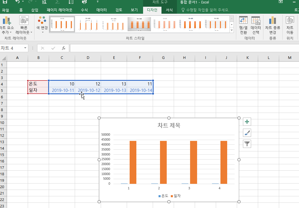 ALT + F1 단축키를 입력하면, 입력되어 있는 데이터를 기반으로 차트를 삽입해줍니다.
