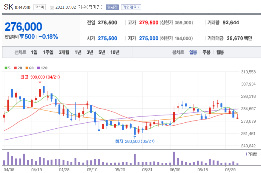 - 1991년 설립, 2009년 유가증권 상장. 2015년 8월 (구)SK주식회사를 흡수합병하고 사명을 SK C&C에서 SK주식회사로 변경하였으며, SK그룹의 지주사임.