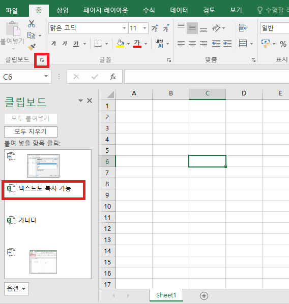 엑셀 클립보드 사용법
