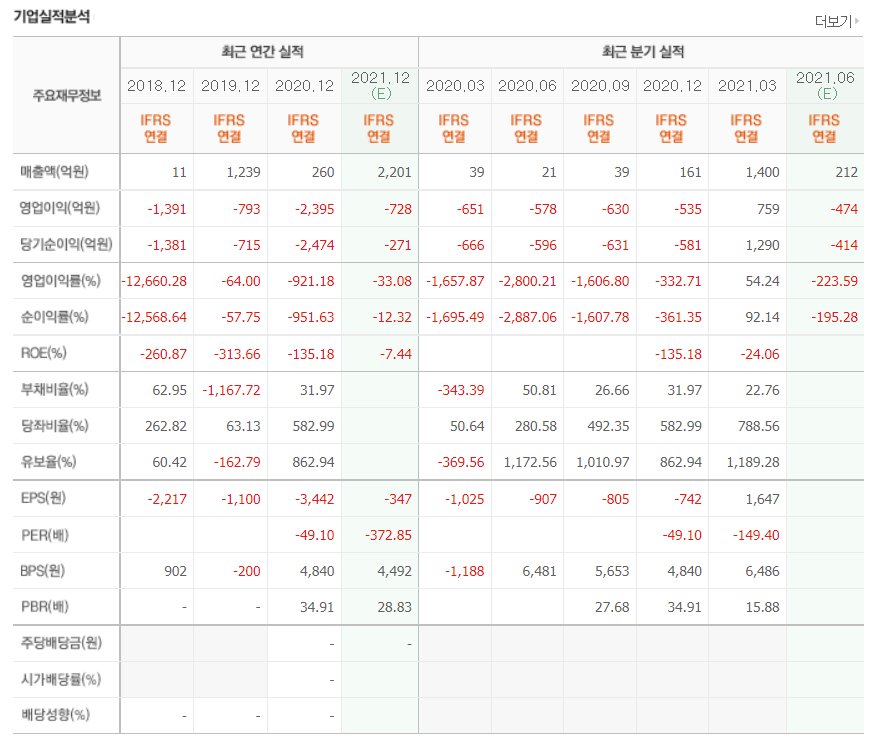 - 2021년 3월 전년동기 대비 연결기준 매출액은 3463.9% 증가, 영업이익 흑자전환, 당기순이익 흑자전환.