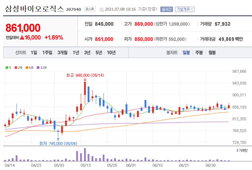 삼성바이오로직스 (바이오주 TOP10)