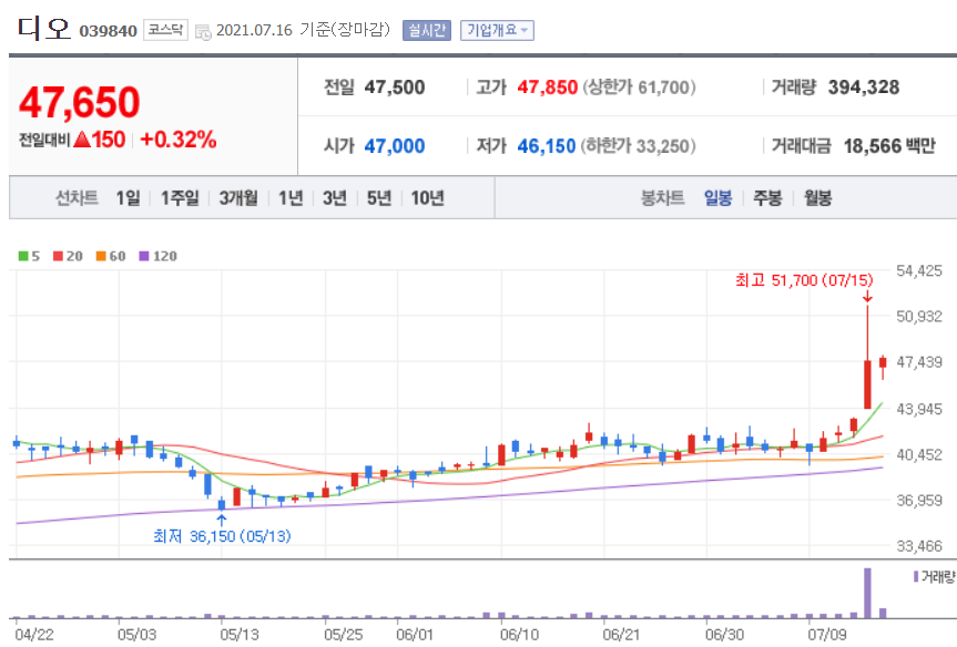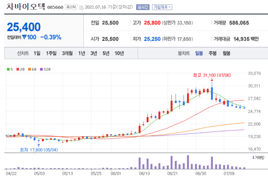 - 동사는 2002년 디오스텍으로 설립되어, 2005년 코스닥 시장에 상장함. 2009년 차바이오텍을 흡수합병하며 상호명을 차바이오앤디오스텍으로 변경하였다가, 2014년 광학사업부를 인적분할하고, 현재의 사명으로 변경.