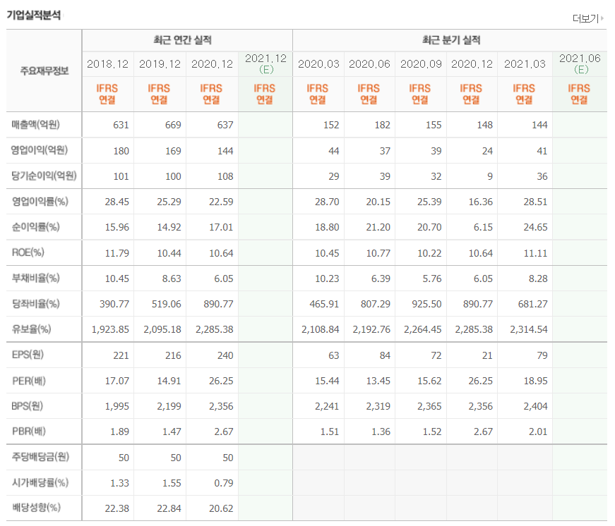 - 2021년 3월 전년동기 대비 연결기준 매출액은 0.6% 증가, 영업이익은 396.6% 증가, 당기순이익은 171.7% 증가.