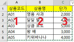 그리고 단가는 세번째 열에 있기 때문에 3을 입력 후 괄호를 닫아서 입력을 끝내줍니다.