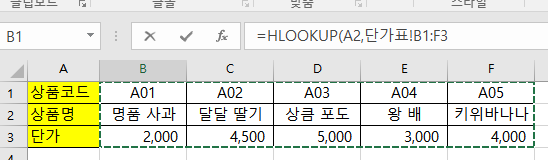 HLOOKUP 사용법