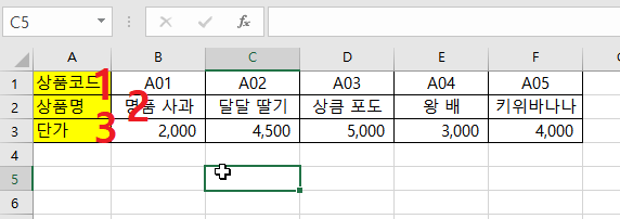 요 데이터를 HLOOKUP에서 사용한다고 하였을땐, 행과 열이 반대로 있으면 됩니다. 그런 경우는 HLOOKUP을 사용하는거죠.