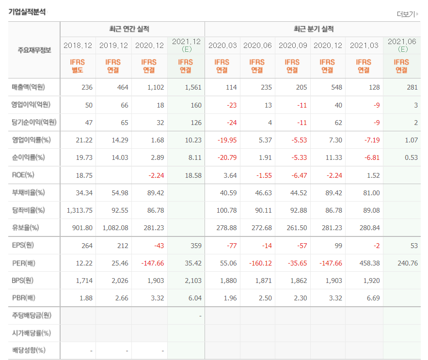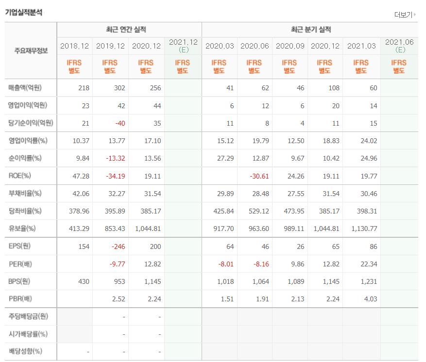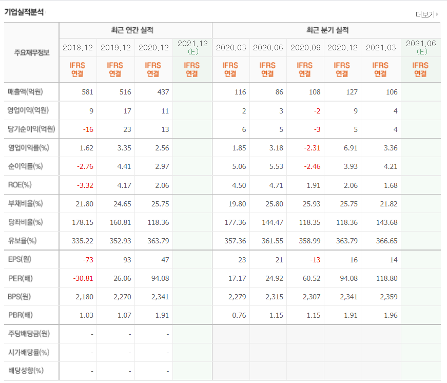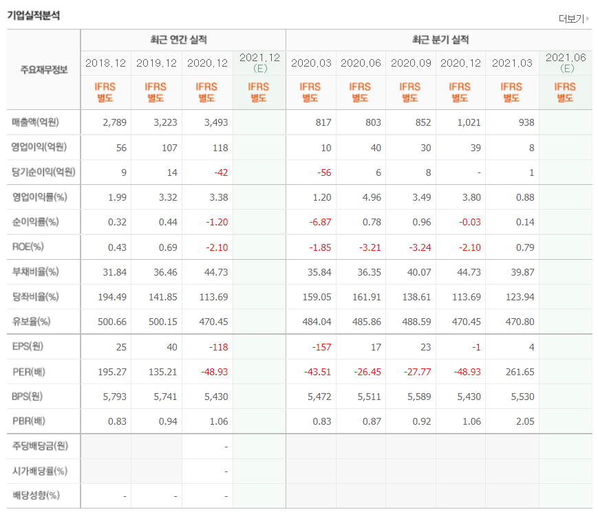 - 2020년 12월 전년동기 대비 별도기준 매출액은 15.1% 감소, 영업이익은 5.4% 증가, 당기순이익 흑자전환.