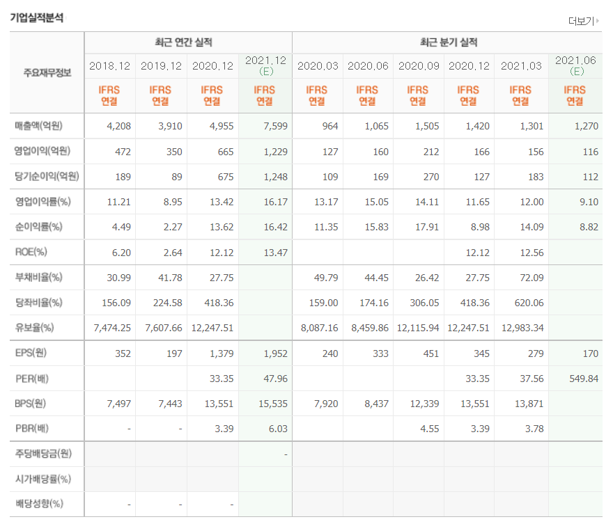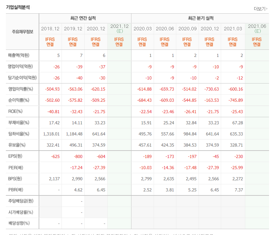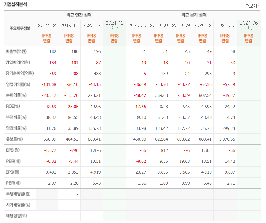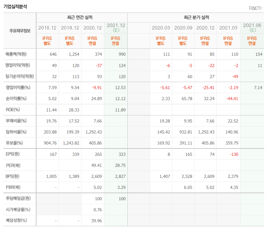 - 2021년 3월 전년동기 대비 연결기준 매출액은 0.7% 감소, 영업손실은 61.2% 감소, 당기순이익 적자전환.