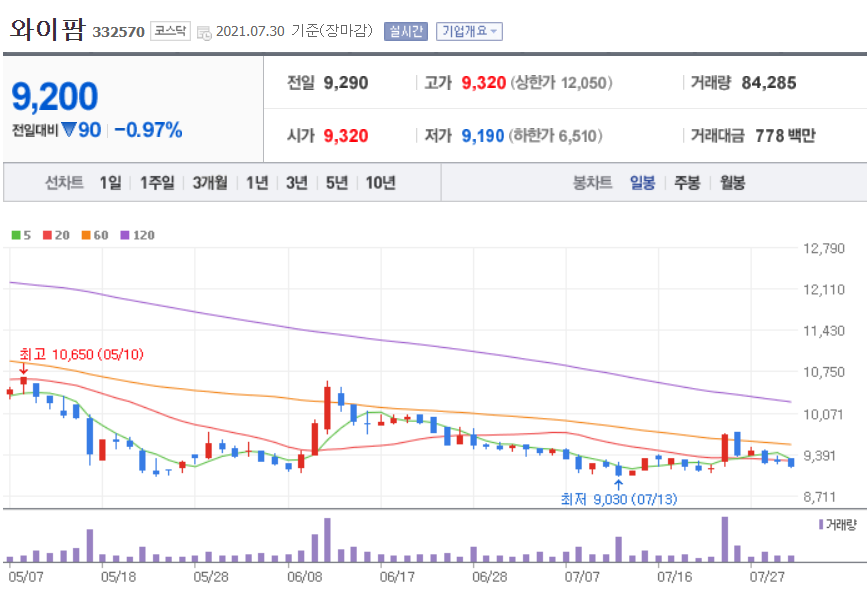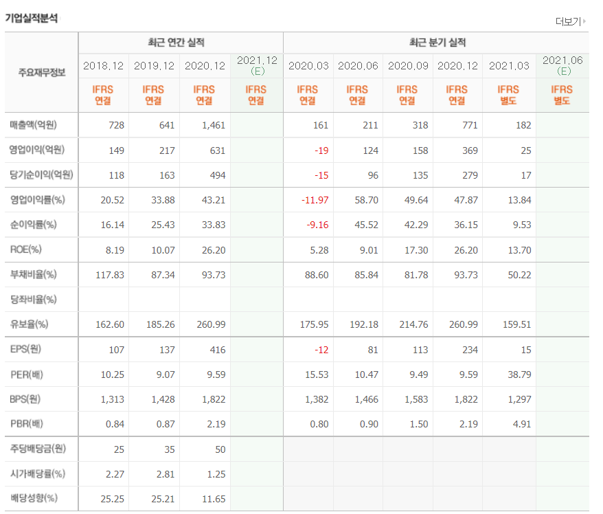 - 2021년 3월 전년동기 대비 별도기준 매출액은 2.3% 감소, 영업이익은 34.6% 감소, 당기순이익은 36.6% 감소.