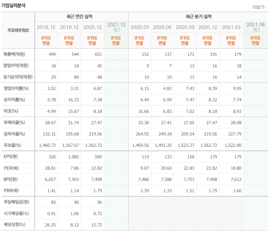 - 2021년 3월 전년동기 대비 연결기준 매출액은 17.9% 증가, 영업이익은 91% 증가, 당기순이익은 49.9% 증가.