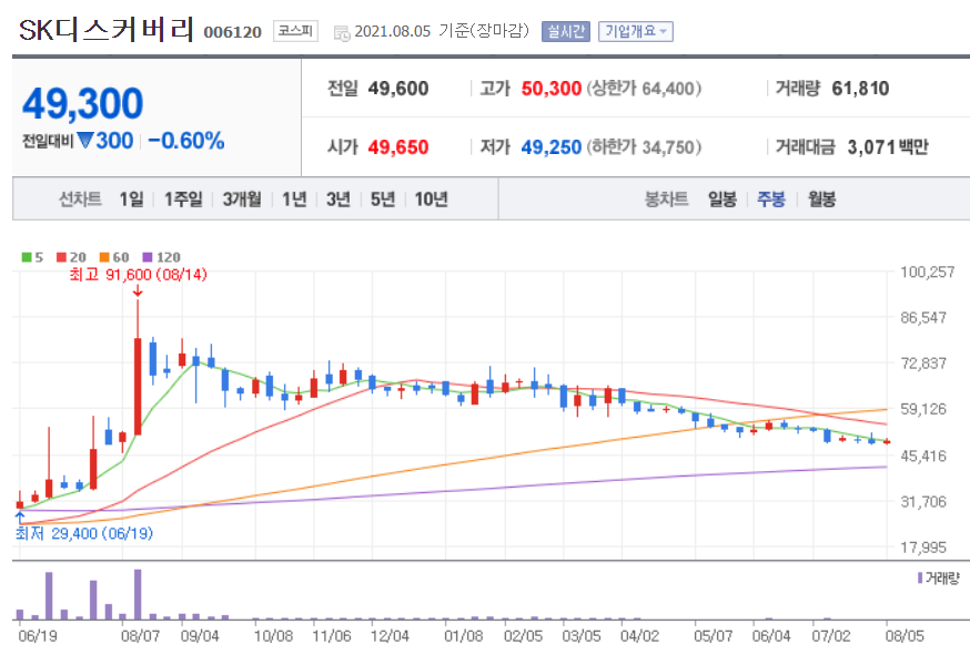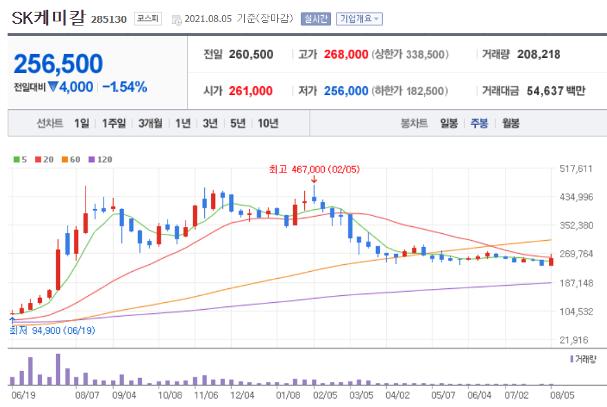 - 2017년 12월 분할기일로 'SK디스커버리주식회사'로 상호를 변경하고 투자부문인 SK디스커버리주식회사와 사업부문인 SK케미칼주식회사로 인적분할함.