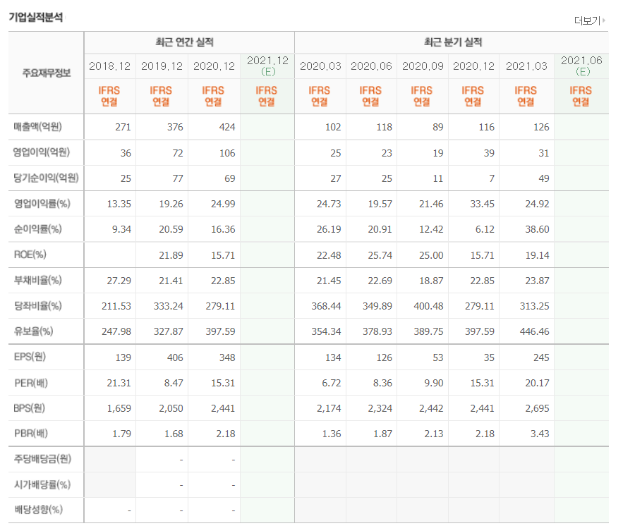 - 2021년 3월 전년동기 대비 연결기준 매출액은 24.1% 증가, 영업이익은 25% 증가, 당기순이익은 82.1% 증가.