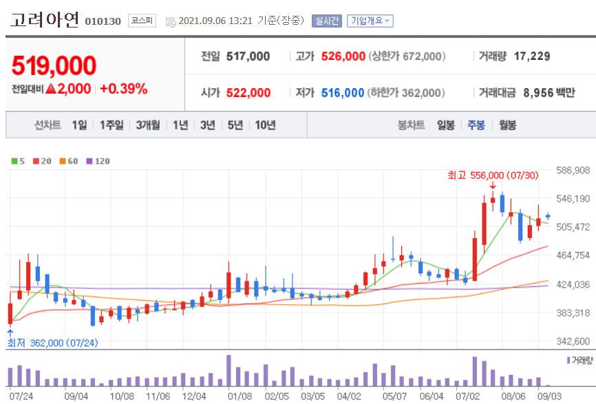 대주전자재료 차트