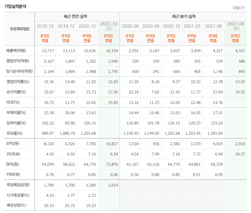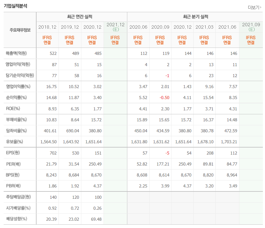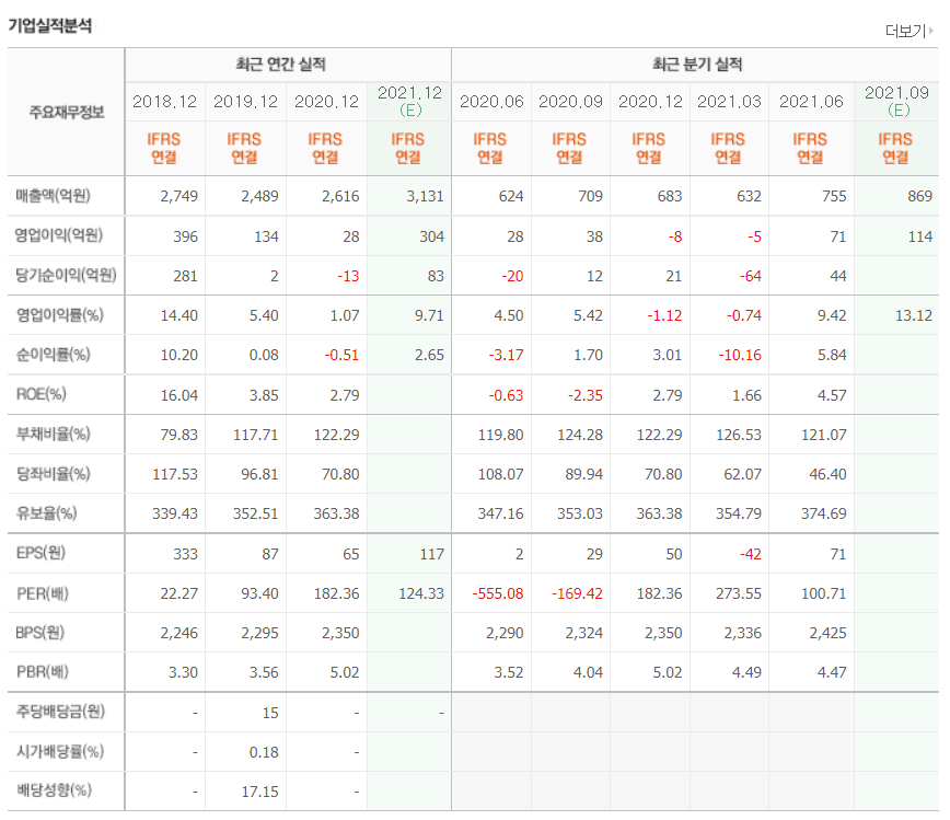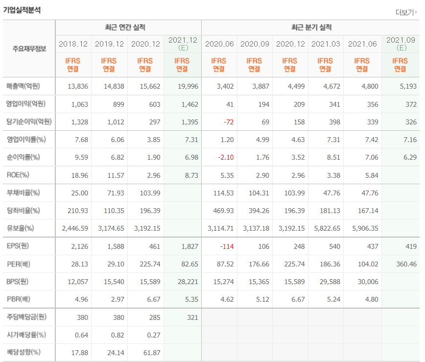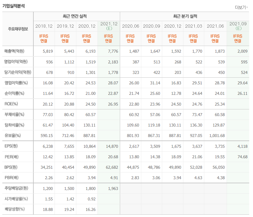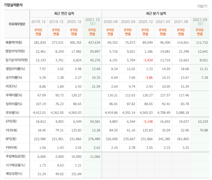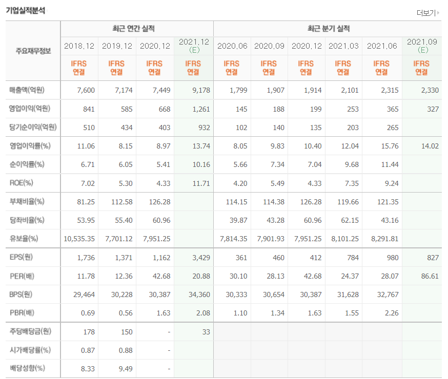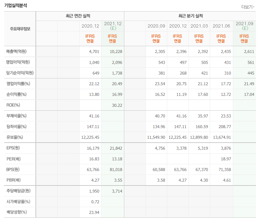 - 2021년 6월 전년동기 대비 연결기준 매출액은 54.5% 증가, 영업이익은 356.3% 증가, 당기순이익은 593.4% 증가.