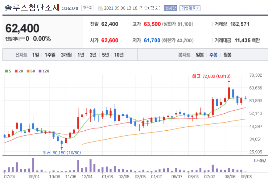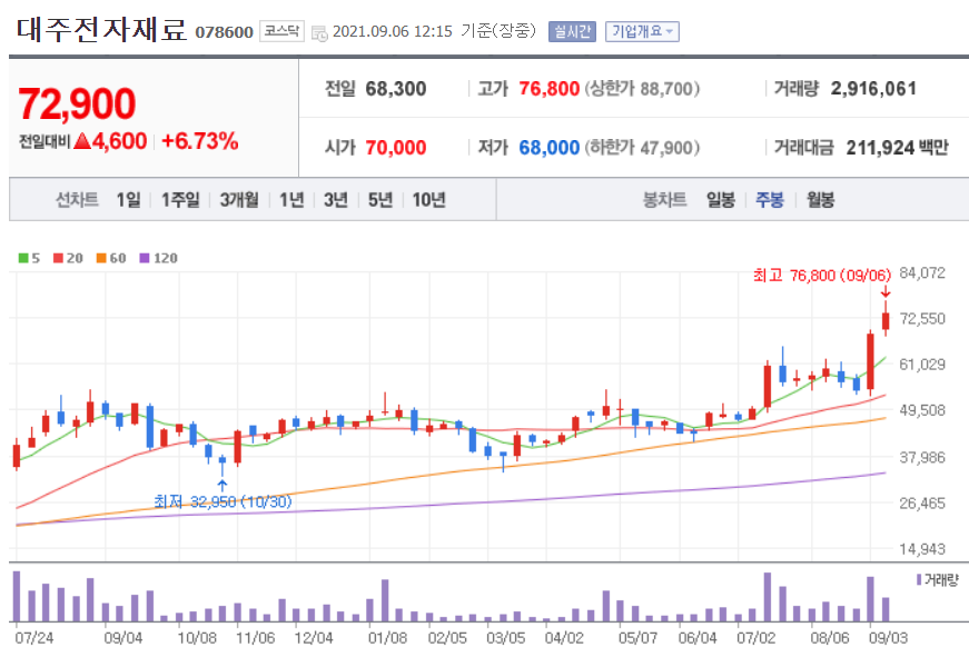 실리콘 음극재를 생산하고 있다. 대주전자재료의 차트 및 실적 등을 아래에서 확인해보세요.