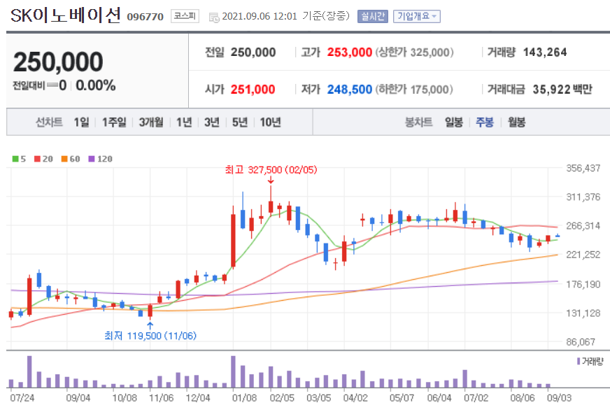 SK이노베이션 차트