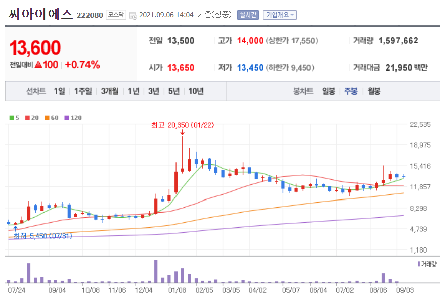 씨아이에스 (2차전지 관련주 대장주)