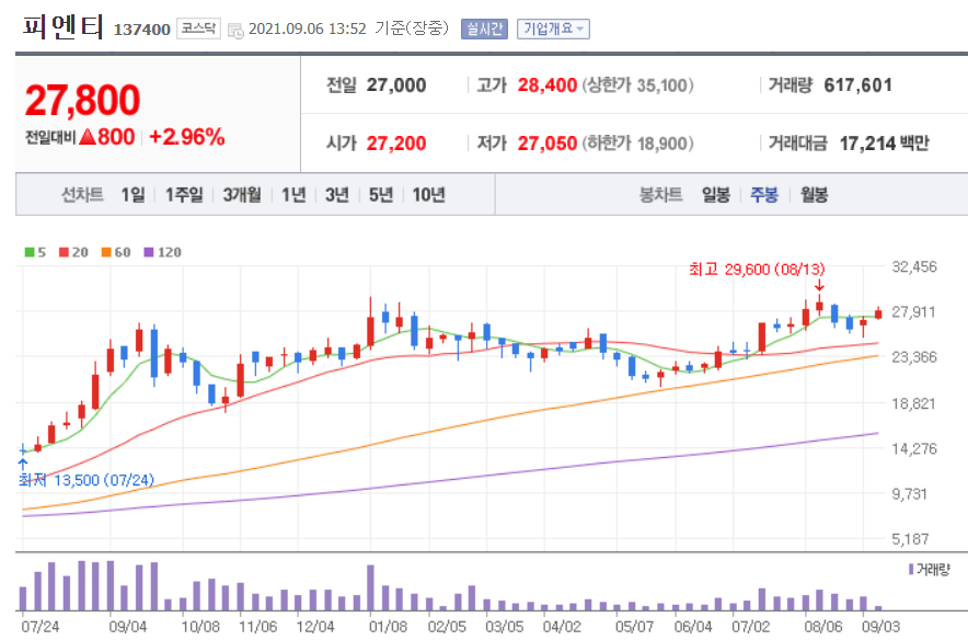 피엔티 (2차전지 관련주 대장주)