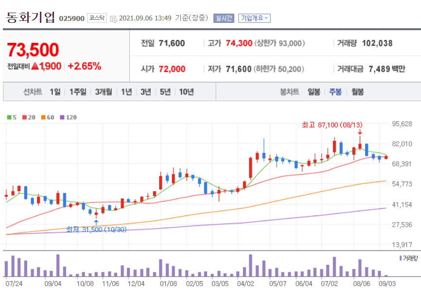동화기업 차트