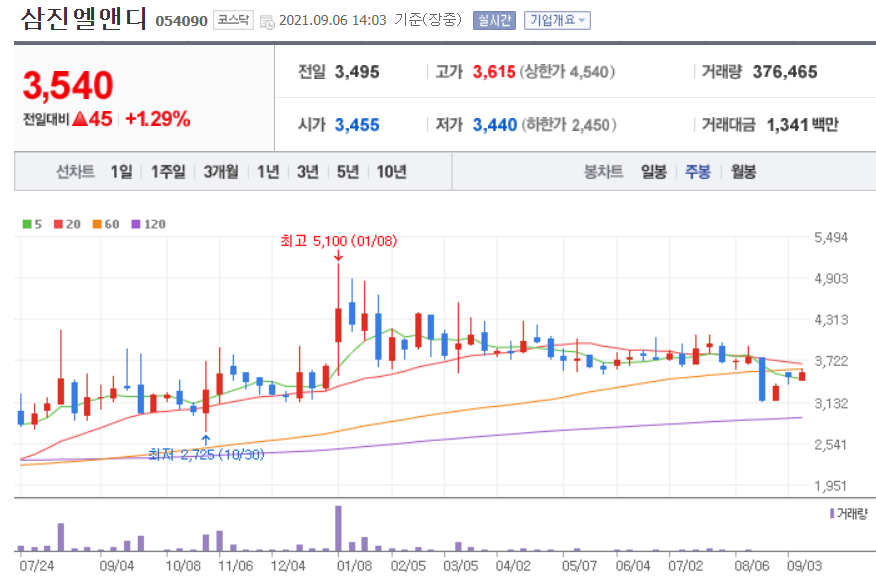 삼진엘앤디 차트