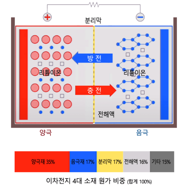 2차전지는 양극제, 음극제, 분리막, 전해질의 4가지 주요 물질과 동박,전해질, 도전재 바인더 등의로 이루져 있습니다. 이러한 여러 소재들로 구성되어 있는 만큼 2차전지 관련주들을 많습니다. 2차전지 관련주 대장주를 소재별로 정리하여서 아래에서 확인해보겠습니다.