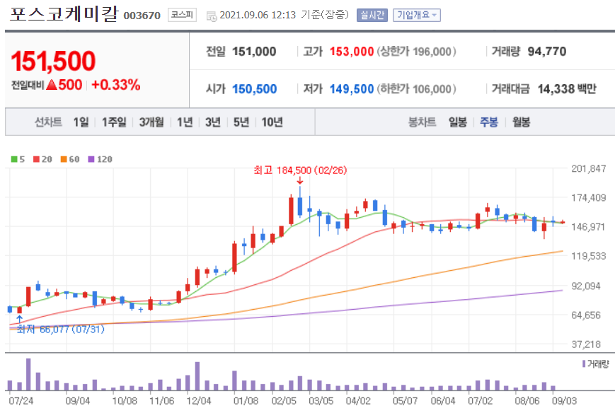 포스코케미칼 차트