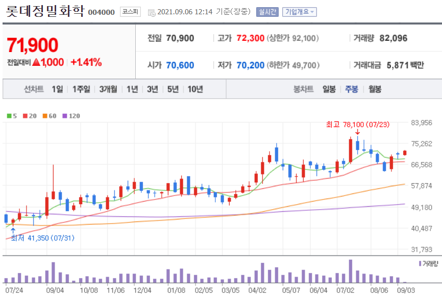 롯데정밀화학 차트
