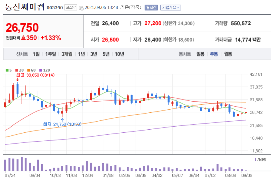 동진쎄미켐 차트