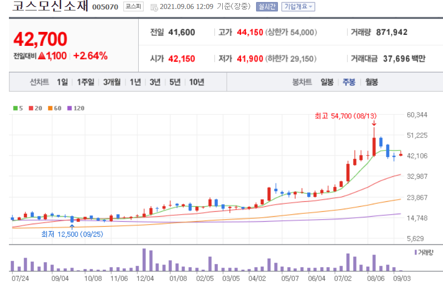 코스모신소재 (2차전지 관련주 대장주)