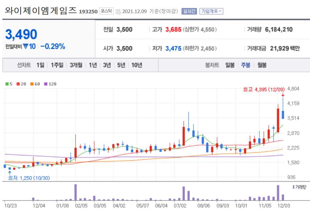 와이제이엠게임즈 (게임주 총정리)