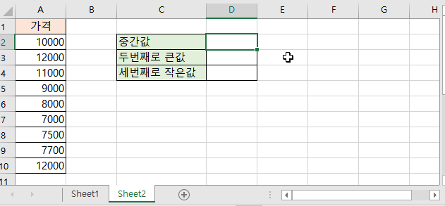 중간값, 두번째로 크거나 작은 값 구하기(MEDIAN 함수)