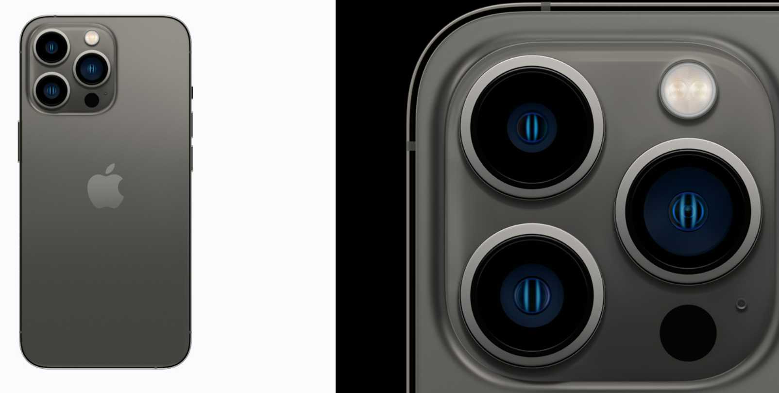 아이폰 13 Pro Max에는 아이폰 13 Pro와 동일하게 망원 f2.8, 울트라와이드 f1.8, 와이드 f1.5가 트리플 카메라가 탑재되어 있습니다.