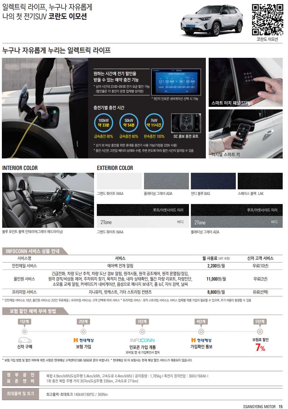 코란도 이모션은 쌍용차에서 자신있게 내논 첫 전기차로 보조금 적용시 2천만원대 구입이 가능하도록 가성비를 중점으로 구성하였으며, LG전자와 LG에너지솔루션등에서 배터리를 공급 받는다고 합니다.