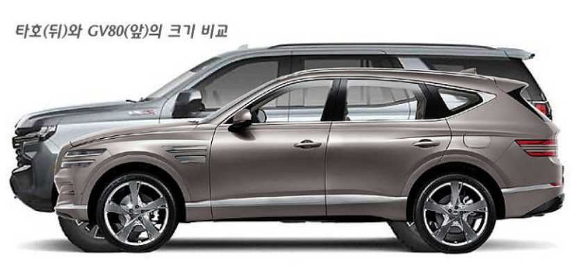 큰 차체로 보이던 GV80도 타호와 함께 서면 작아질정도로 타호의 크기는 압도적이다.