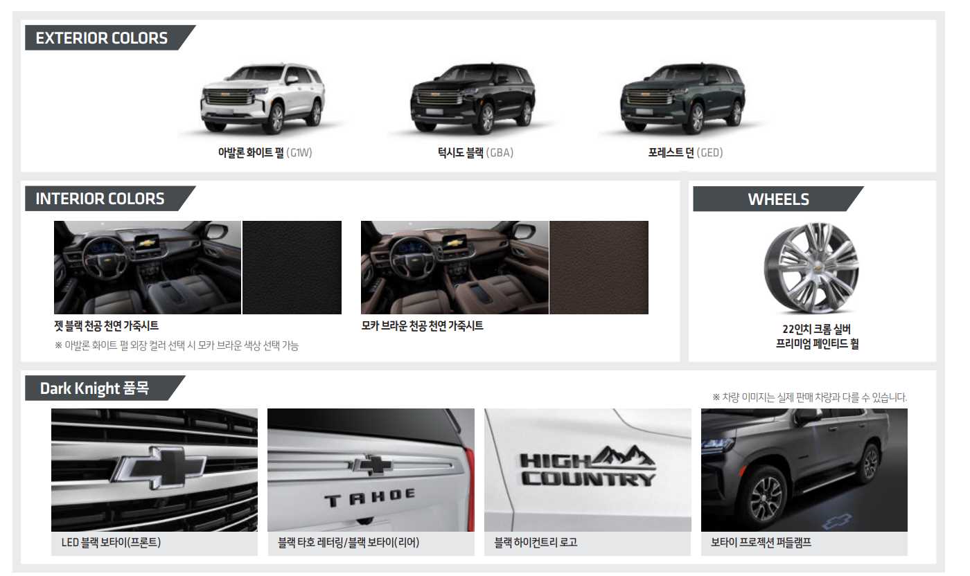 엔진 최대 토크는 63.6kgm로 최대 426마력이며, 하이 컨트리 단일 트림으로 6.2L VA 자연흡기 가솔린 엔진에 10단 자동 변속기가 탑재되었습니다.