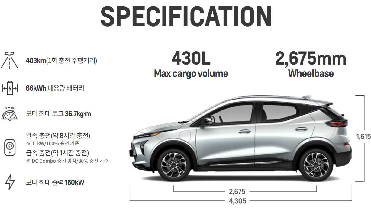 2022년형 쉐보레 볼트 EUV 스펙 및 주행거리
