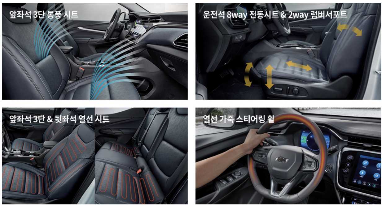 이밖에 볼트 EUV에는 360도 올 어라운드 세이프티를 구현하기 위해 동급 최대인 10개 에어백과 어댑티브 크루즈 컨틀롤, 차선이탈 방지 경고 및 보조 시스템, 저속 자동 긴급 제동 시스템, 전방 보행자 감지 및 제동 시스템 등 14가지의 능동 안전사양이 적용되어 있다.