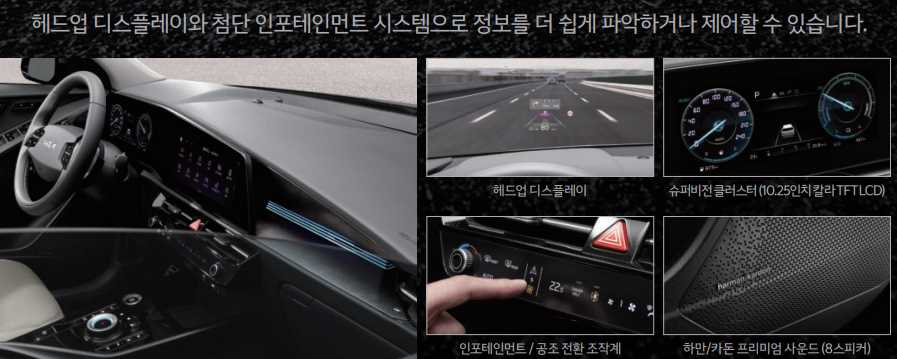 편의사항으로는 디지털 키 2 터치, 빌트인 캠, 서버기반에 AI 음성인식 시스템, 헤드업 디스플레이, 후석 승객 알림, 차량 내 간편 결제, 카투홈, 발레모드, 내비게이션 무선 업데이트 등이 제공된다.
