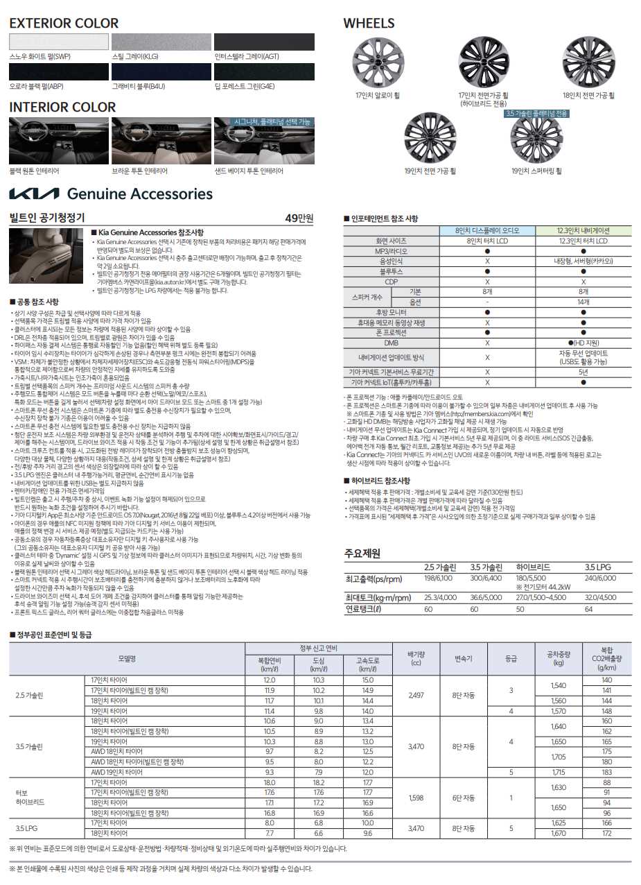 2023년형 기아 K8 하이브리드 제원 및 파워트레인