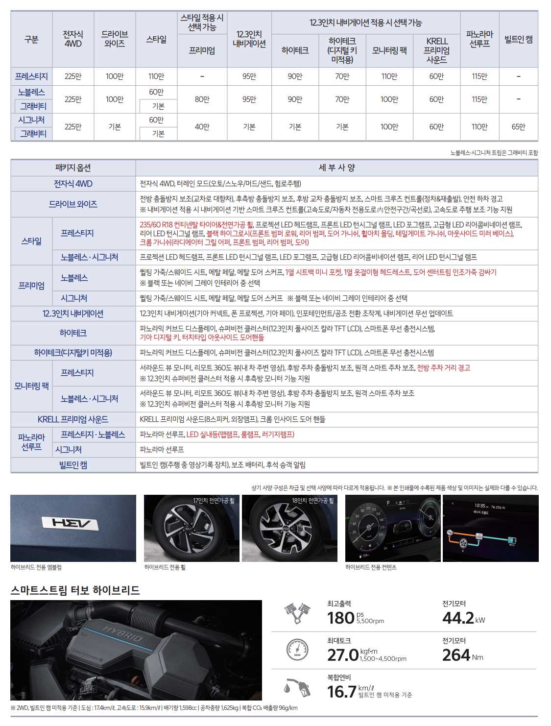 2022 스포티지 하이브리드에는 트랜디트림은 없으며, 프레스티지 트림 부터 시작됩니다.