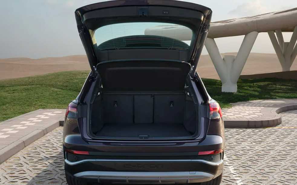 다재다능한 가족용 SUV 아우디 Q4 e-트론은 글러브 컴파트먼트를 포함해 총 24.8 리터의 적재 용량을 제공하며, 다양한 수납 솔루션을 제공합니다. 트렁크는 520L이며, 뒷자석을 접으면 1,490 리터까지 늘어나게 됩니다.