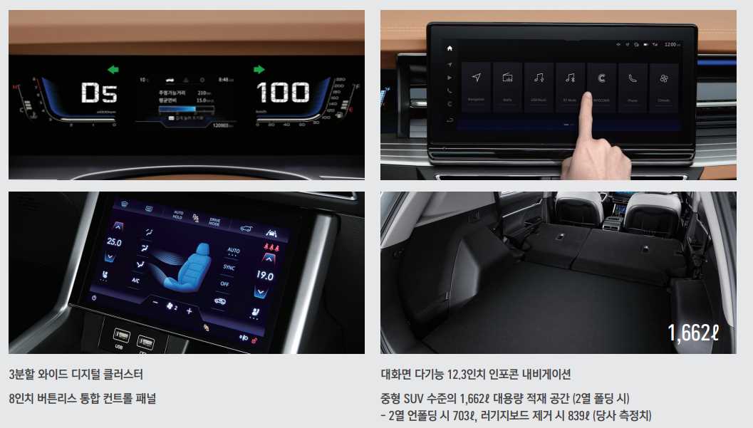 공통으로 선택할 수 있는 선택사양은 7가지다. 구체적으로 사륜구동 시스템(200만원), 세이프티 선루프(50만원), 무릎 에어백(20만원), 어댑티브 크루즈 컨트롤과 후측방 접근 경보 등을 포함하는 딥 컨트롤 패키지(100만원) 등이다.