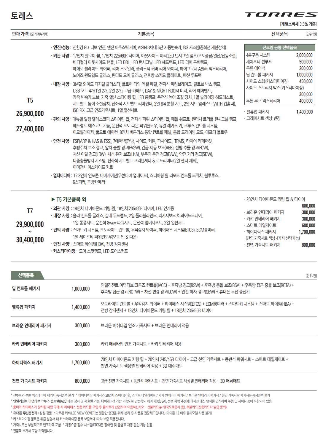 2. 중형 스포츠유틸리차(SUV) 토레스 가격은 2,690~3,725만원