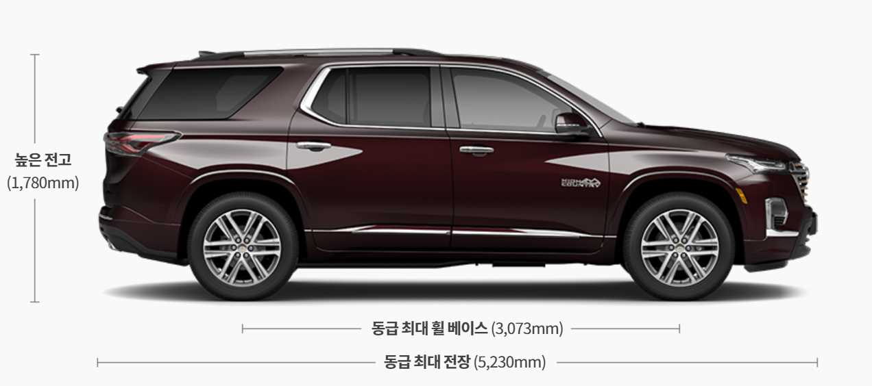 전장은 5,230㎜로 국내 동급 SUV 중 가장 길다. 사실상 5미터 정도에 이르는 SUV의 3열이 짐 싣는 용도로만 쓰였다면, 비교적 넉넉한 3열을 제공하는 쉐보레 트래버스는 짐이 아닌 사람이 탑승하기에도 좋다.